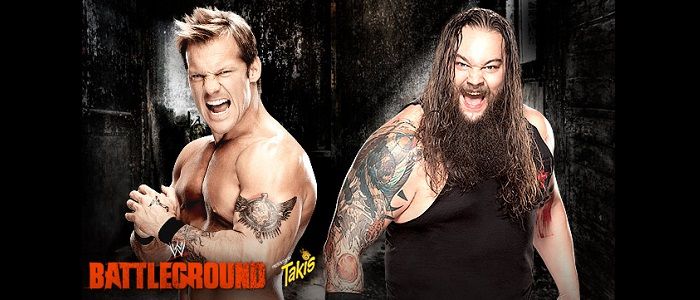 Wyatt traps Jericho in the corner and goes to work with punches and knee shots. Jericho slaps Wyatt, but Wyatt slaps him right back and chokes him against the second rope. Jericho regains control and chokes Wyatt against the second rope. Jericho chops Wyatt in the corner and whips him to the opposite corner, but Wyatt levels Jericho with a back elbow shot on the rebound. Wyatt goes for a DDT, but Jericho counters into an attempted Walls of Jericho, but Harper and Rowan hop up onto the ring apron to distract Jericho and cause him to break the hold. Wyatt locks in a standing side head lock, but Jericho breaks the hold and connects with a drop kick. Wyatt rolls to the ring apron and gets back to his feet, but Jericho hits a springboard drop kick to knock him down to the arena floor. Harper and Rowan help Wyatt get back to his feet on the outside, but Jericho heads up top and takes out all three men with a flying splash from the top. Jericho rolls Wyatt back into the ring, but Harper grabs Jericho's boot to prevent him from climbing back into the ring as well. The referee sees Harper's interference and ejects both Harper and Rowan from ringside. Jericho watches Harper and Rowan head up the ramp, and that distraction gives Wyatt enough time to blast Jericho off the ring apron and hard into the barrier. Wyatt retrieves Jericho from ringside and tosses him back into the ring. Wyatt charges Jericho in the corner, but Jericho slides out of the way, causing Wyatt to post himself in the corner. Jericho heads up top and connects with a double ax handle. Jericho goes for a running bulldog, but Wyatt evades. Wyatt hit Jericho with a back breaker and a gut buster. Jericho gets back to his feet and chops Wyatt's chest, but Wyatt whips Jericho to the ropes and levels him with a back elbow shot. Wyatt goes for a running senton, but Jericho gets his knees up. Jericho heads up top, but Wyatt follows him up. Jericho and Wyatt slug it out up top. Wyatt sets up for a superplex, but Jericho knocks him down to the mat. Wyatt rushes back to the corner and pulls Jericho into a jaw breaker off the top. Wyatt charges Jericho in the corner, but Jericho gets a boot up. Jericho hits the running bulldog and goes for the Lionsault, but Wyatt gets his knees up. WYATT CRABS UP AND CRAWLS TO THE CORNER! Jericho climbs to his feet in the corner, but Wyatt connects with a running splash. Wyatt goes for another running splash, but Jericho catches him with an elbow shot from behind. Jericho tackles Wyatt, causing Wyatt's head to bounce awkwardly off the bottom turnbuckle. Jericho goes for the cover but only gets a two count. Wyatt hits Jericho with a DDT on the ring apron and rolls him back into the ring for a two count. Wyatt goes for Sister Abigail, but Jericho counters into an attempted Walls of Jericho, but Wyatt kicks him away. Wyatt sets his sights on Jericho and heads for him, but Chris Jericho defeats Bray Wyatt with the Code Breaker.