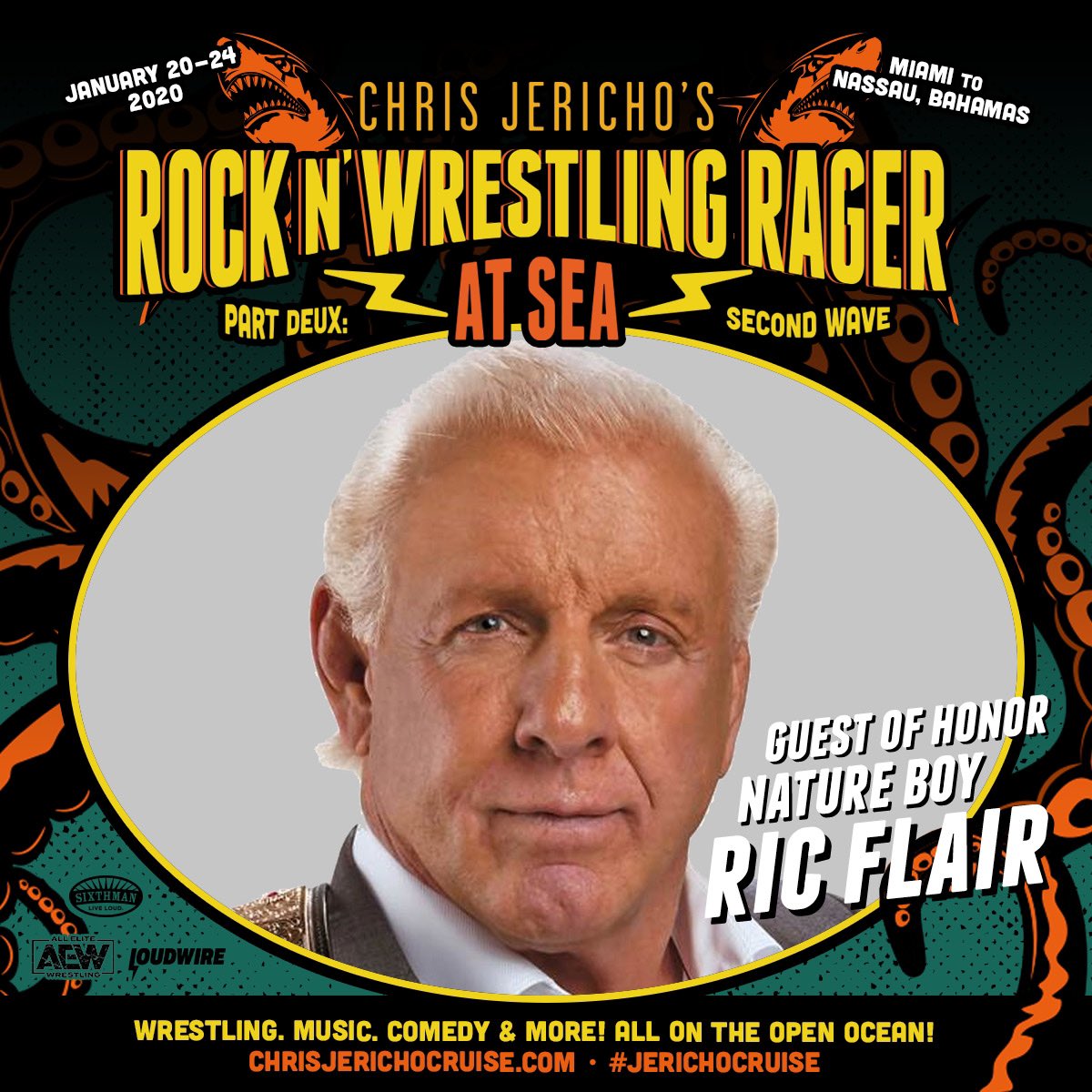 Hey There Everybody, The Nature Boy Ric Flair Here! Big Announcement. I Am Looking Forward To Seeing Each And Every One Of You Aboard Chris Jericho’s Rock N Wrestling Rager At Sea, Sailing From Miami To The Bahamas, January 20-24, 2020.